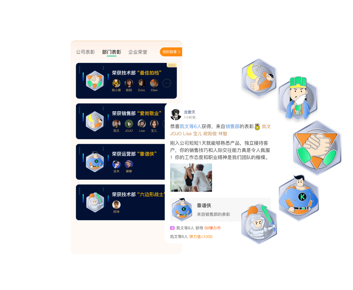 通过勋章赞赏,表达对同事的感谢欣赏